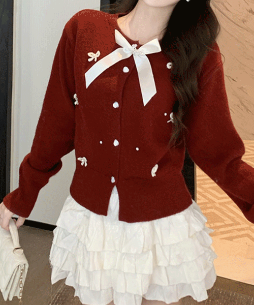 - 당일발송 특가 / 빅리본 레드 블랙 버튼 니트 가디건( 리뷰 : 0 )