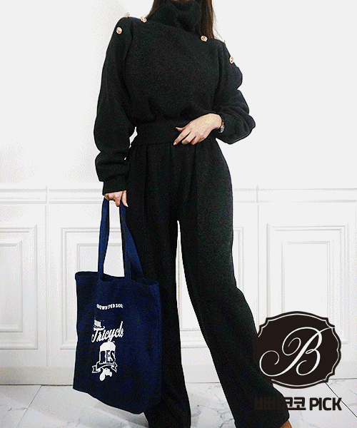 - 국내제작 / Set - 에스다 금장 버튼 목폴라 니트 팬츠 투피스세트( 리뷰 : 0 )