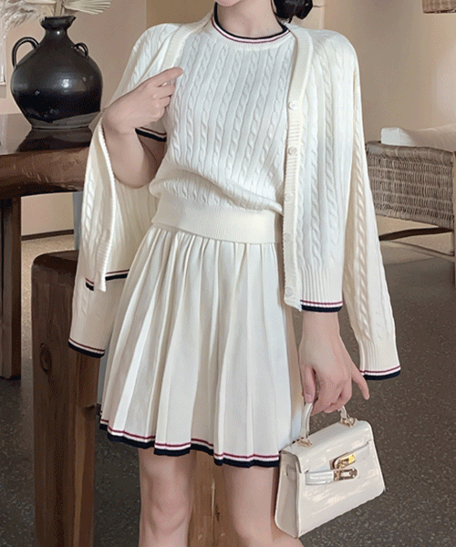 - Set / 클래식 스쿨룩 가디건 플리츠 니트 스커트 투피스 세트( 리뷰 : 0 )