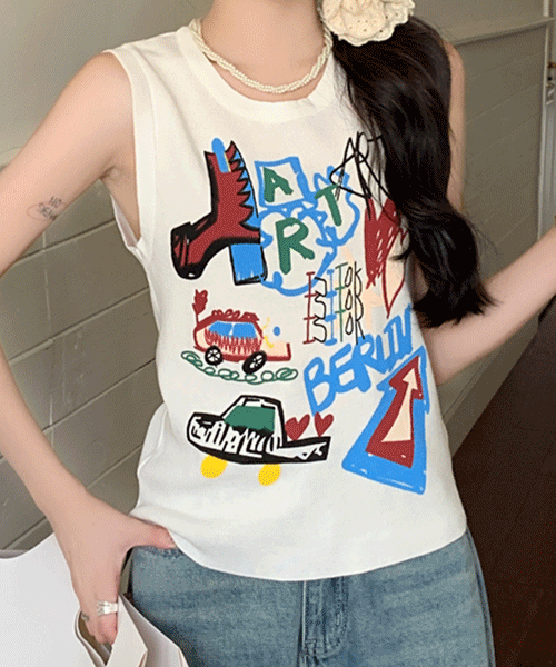 - 낙서 그래비티 슬리브리스 민소매 나시 탑( 리뷰 : 0 )