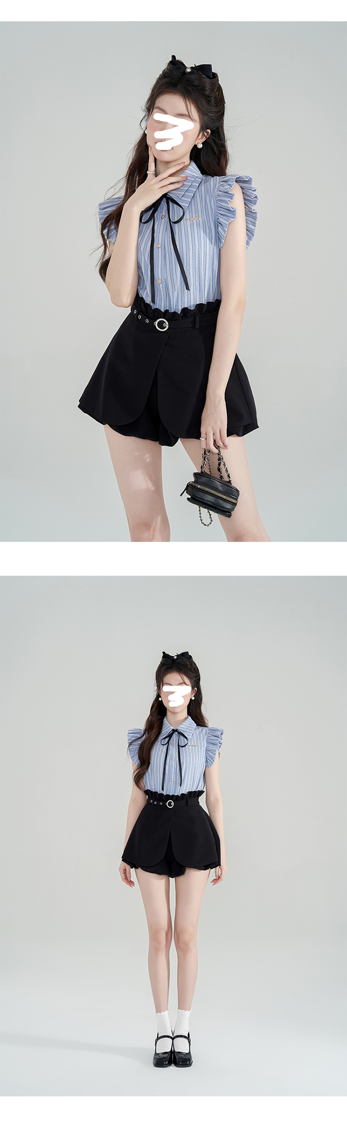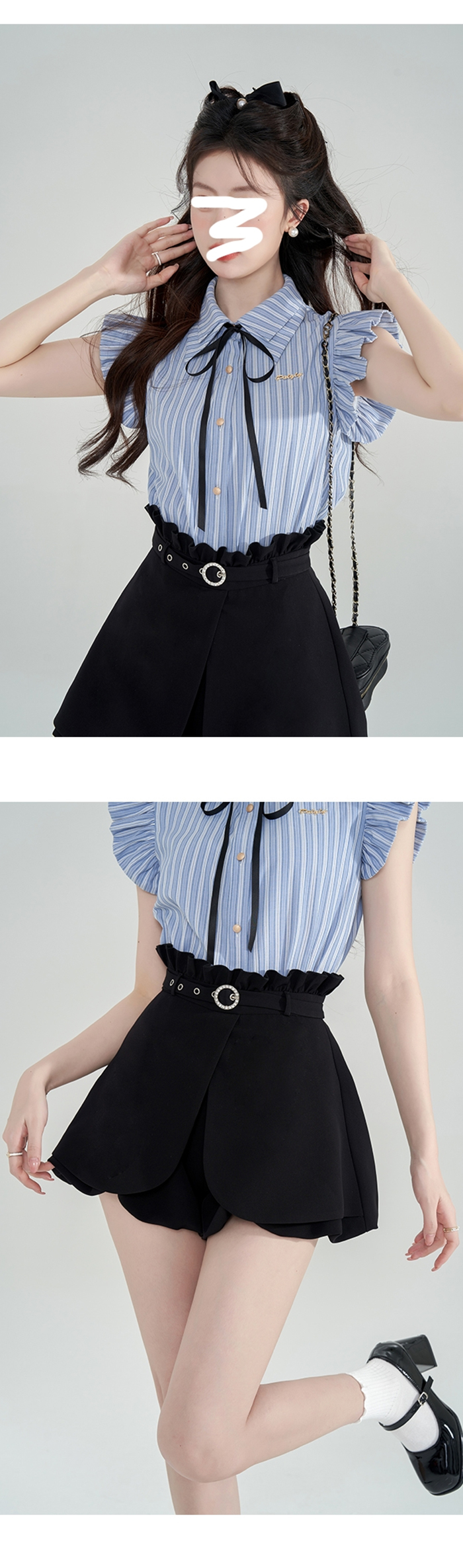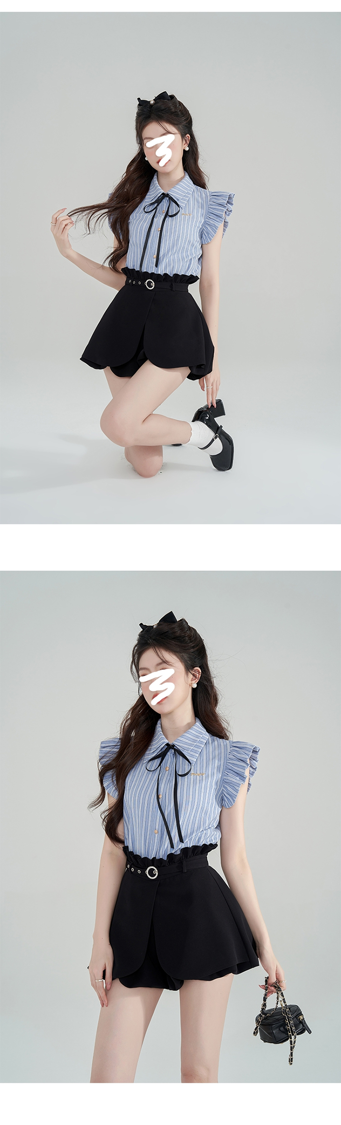 SIZE탑Free 55~66 : 가슴 100~ / 총길이 64 cm스커트팬츠Free 55~66 : 허리 65~ / 총길이 38 cmFABRIC폴리신축성보통 / 비침없음 / 두께감보통초반 드라이클리닝 권장