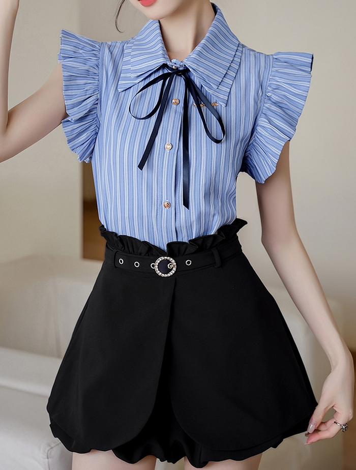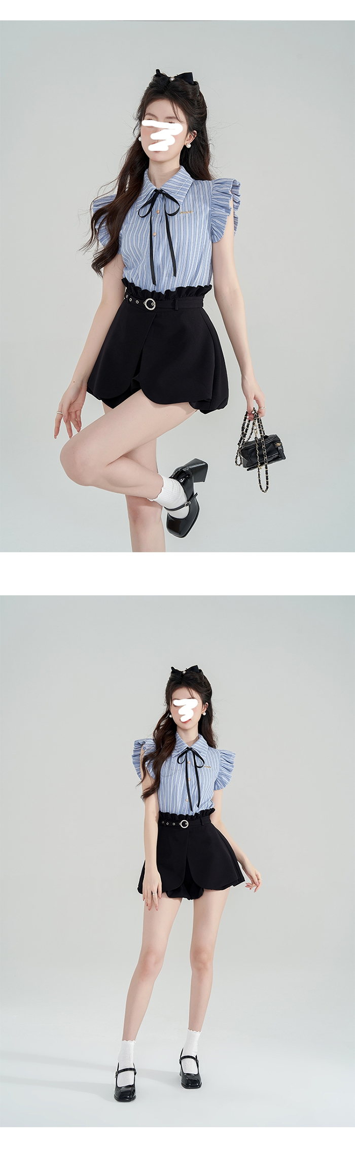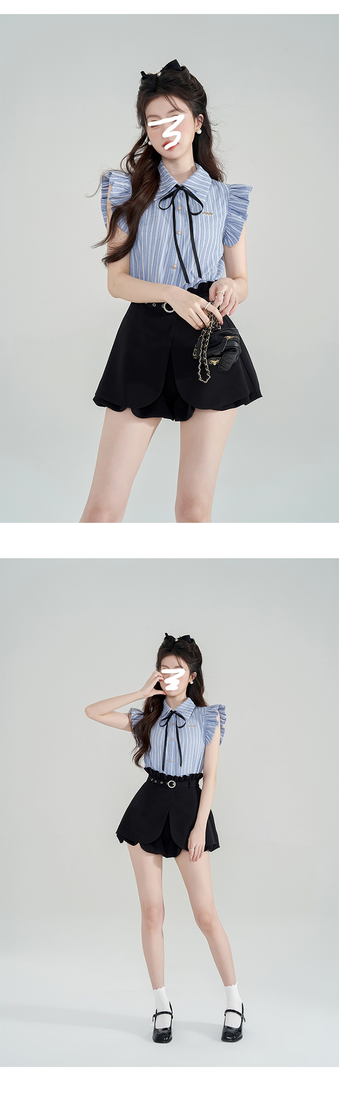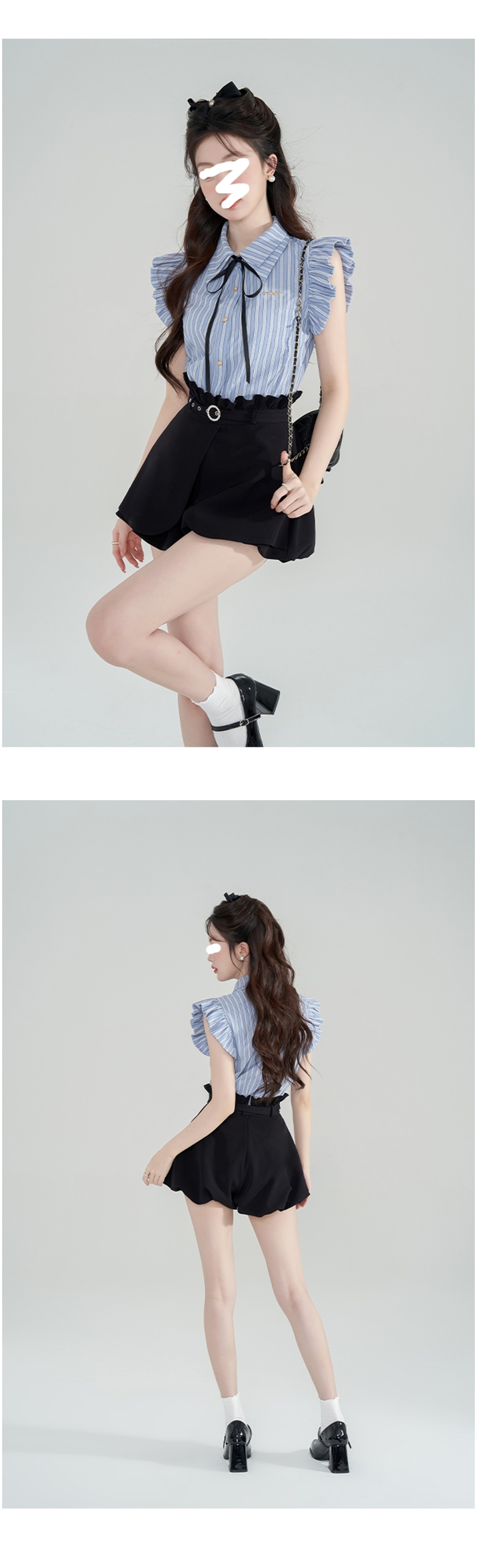 SIZE탑Free 55~66 : 가슴 100~ / 총길이 64 cm스커트팬츠Free 55~66 : 허리 65~ / 총길이 38 cmFABRIC폴리신축성보통 / 비침없음 / 두께감보통초반 드라이클리닝 권장