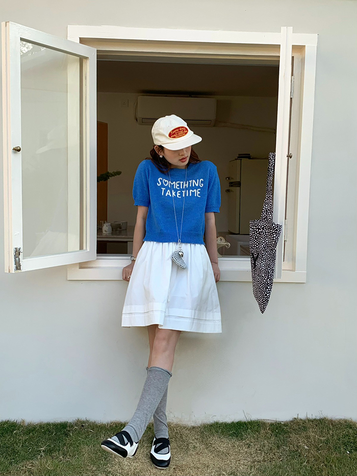 SIZEFree 55~66 : 가슴 88~ / 총길이 48 cmFABRIC폴리신축성보통 / 비침보통 / 두께감얇음초반 드라이클리닝 권장