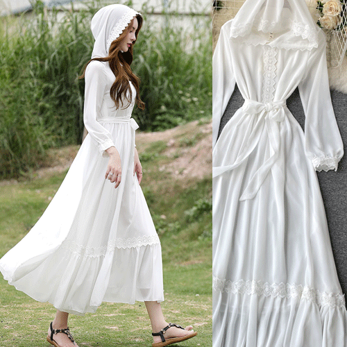 - 무료배송 / 에카트 여리여리 쉬폰 후드 롱원피스( 리뷰 : 1 )