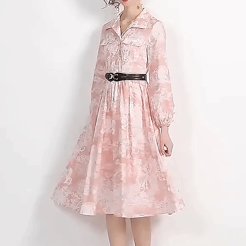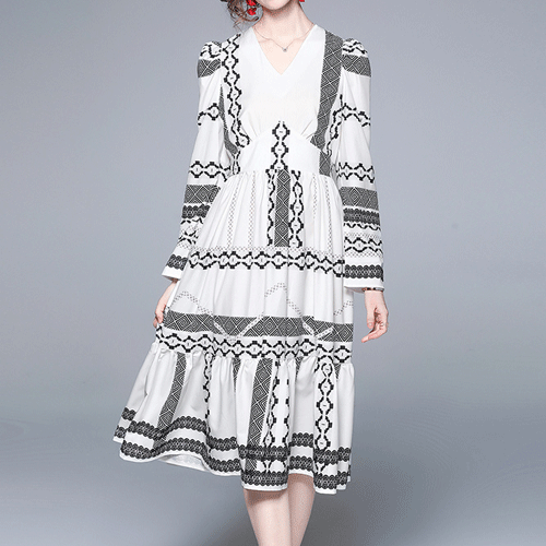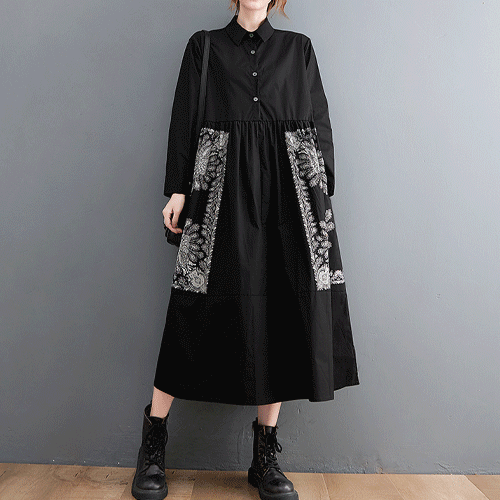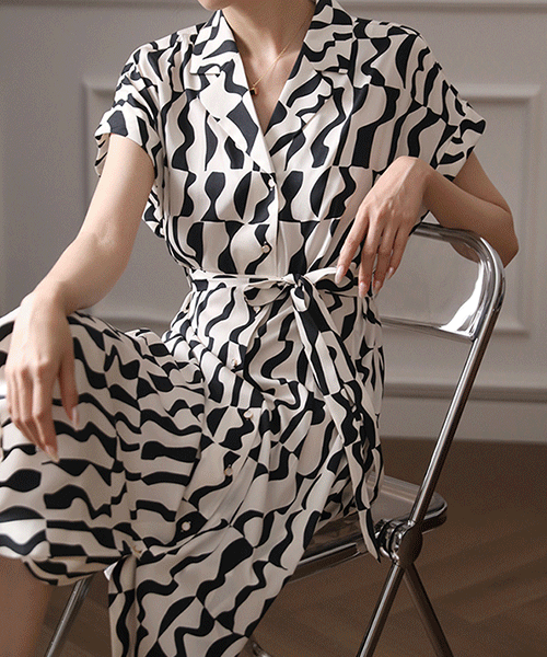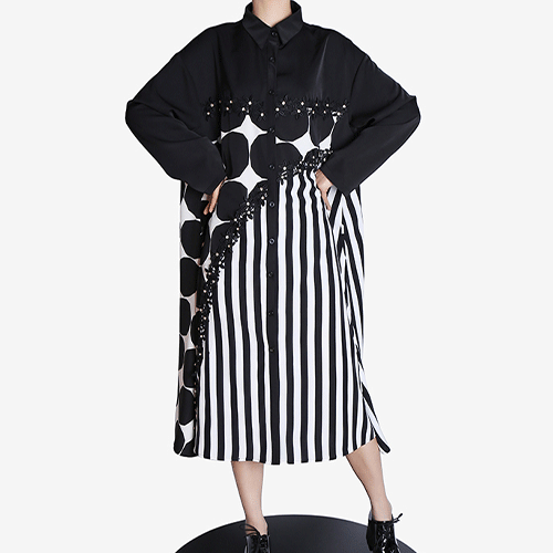 - 제노바 기하학 패턴 롱 셔츠 원피스 - 엘레강스한 페미닌룩( 리뷰 : 0 )