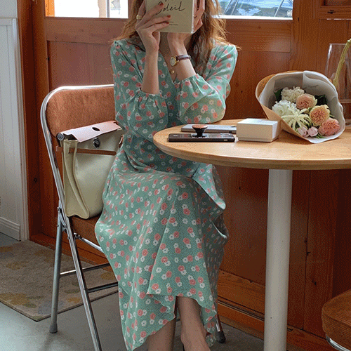 - 무료배송 / 크리스 둥근 빅카라 플로랄 볼륨 롱원피스( 리뷰 : 0 )