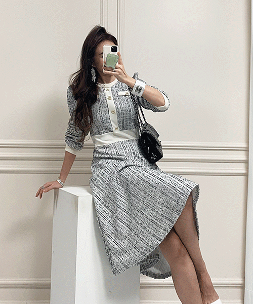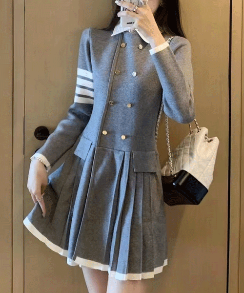 - 메르디 더블버튼 카라 가디건 원피스( 리뷰 : 0 )