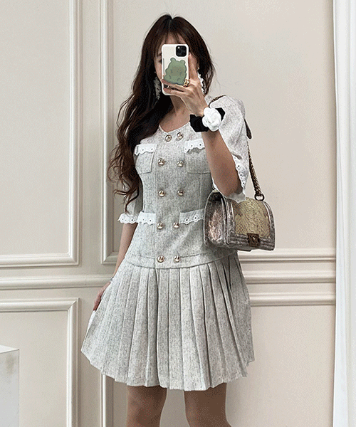 - 마리오 버튼장식 플리츠 원피스( 리뷰 : 0 )