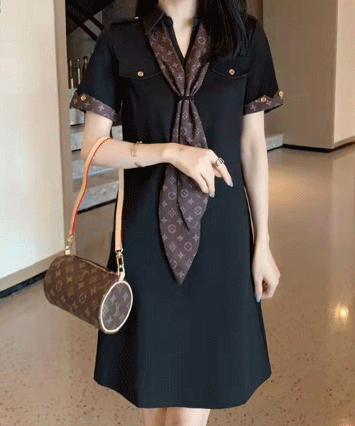 - 르니에 골드 버튼 셔링 슬릿 원피스( 리뷰 : 0 )