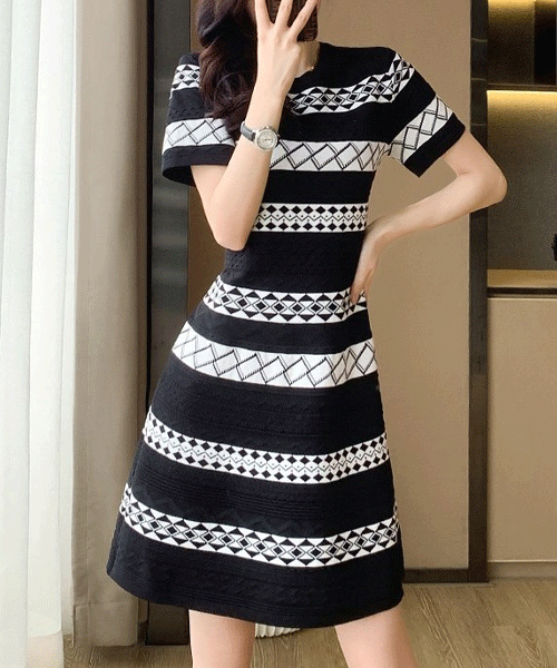 - 우디아 패턴 배색 써머 니트 원피스( 리뷰 : 0 )