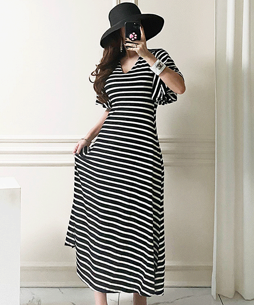 - 국내제작 / 델마 날개소매 스트라이프 고퀄 롱원피스( 리뷰 : 0 )