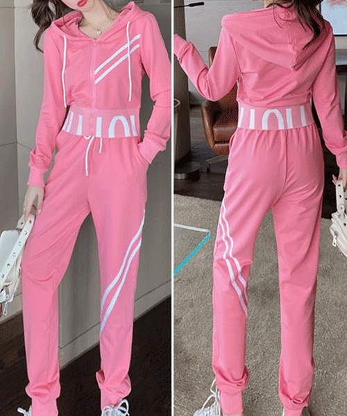 - Set - 페파치 두줄 사선 후드 집업 조거 트레이닝 팬츠 추리닝 세트( 리뷰 : 0 )