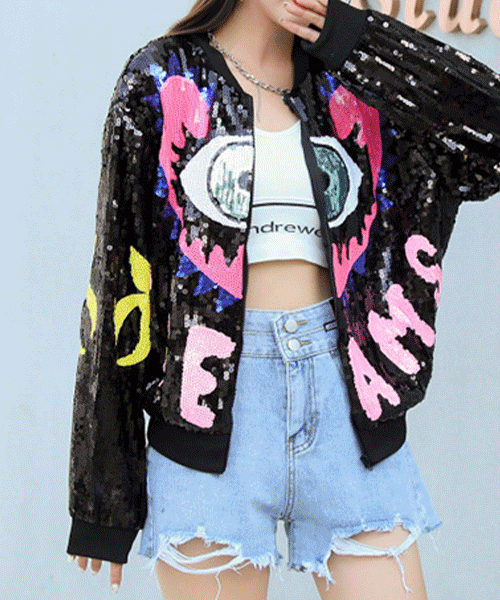 - 외눈박이 스팽글 레터링 집업 점퍼 - 포인트로 예뻐요( 리뷰 : 0 )