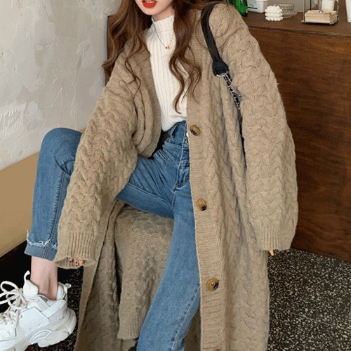 - 로세티 빅카라 꽈배기 하이퀄리티 니트 롱가디건 - 4컬러( 리뷰 : 0 )