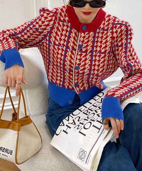 - 리안느 하운드 체크 컬러 배색 니트 가디건( 리뷰 : 0 )
