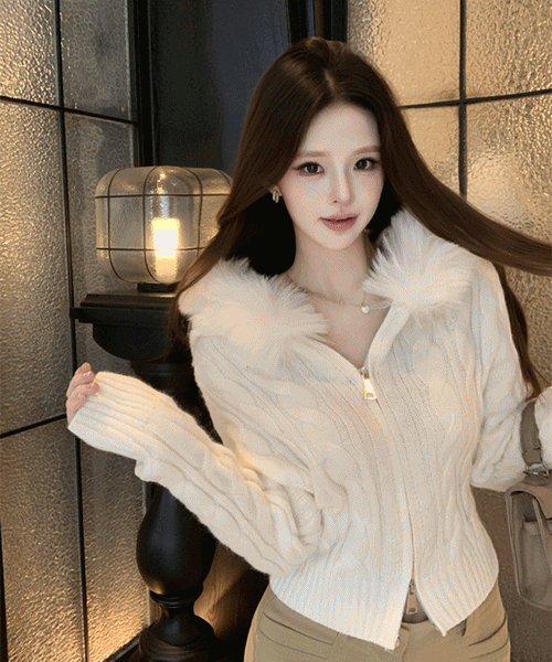 - 헤이지 풍성 퍼 케이블 니트 집업 가디건( 리뷰 : 0 )