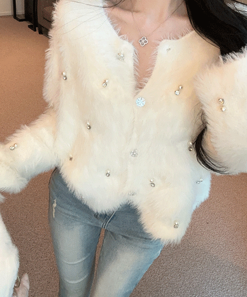 - 복실 앙고라 퍼 보석 장식 가디건( 리뷰 : 0 )