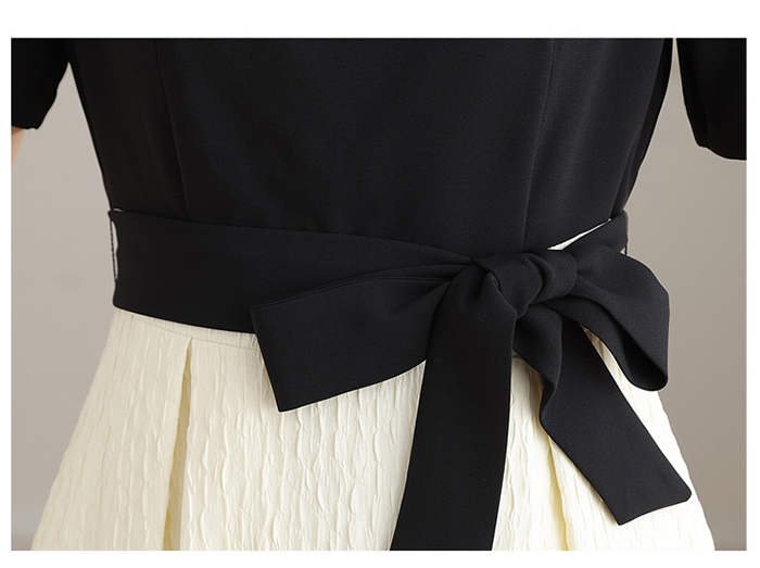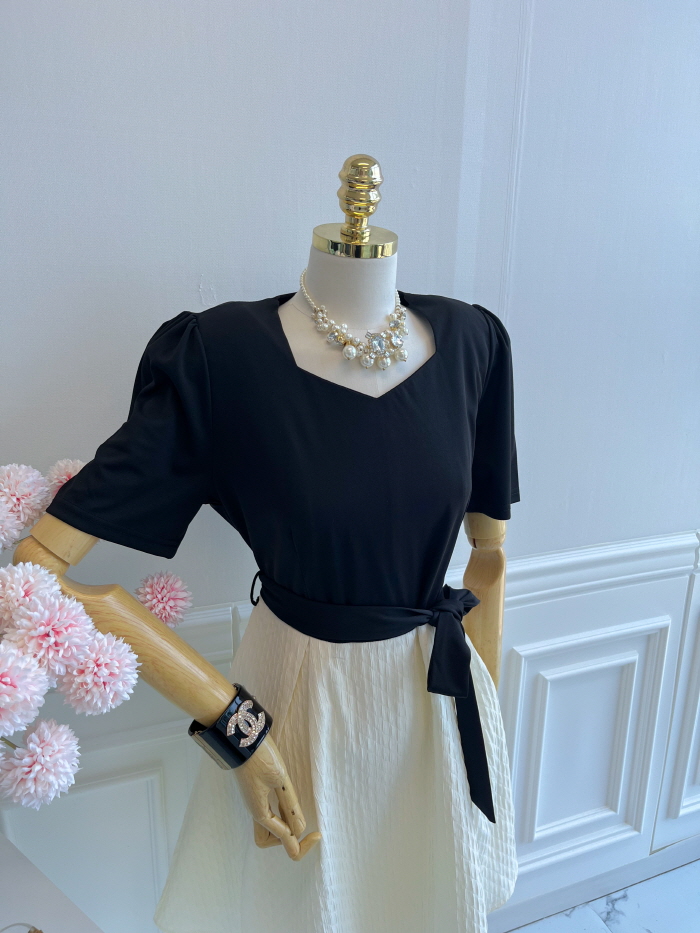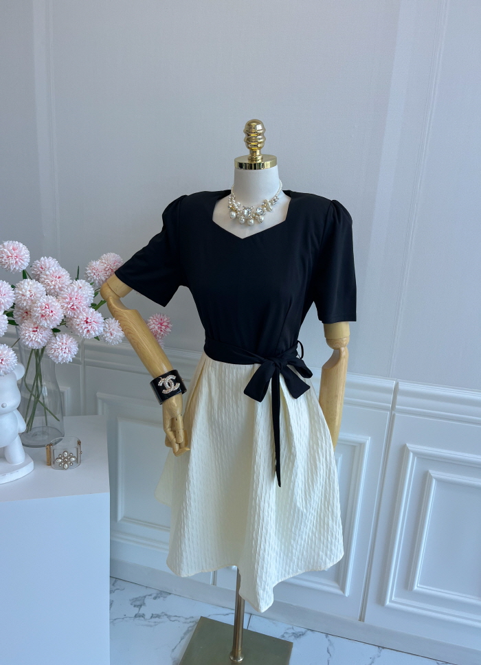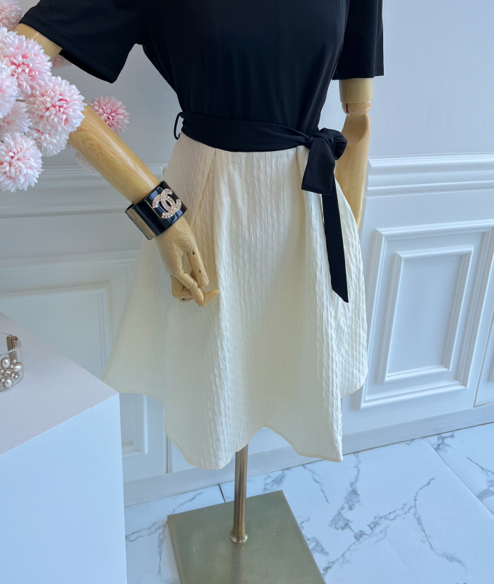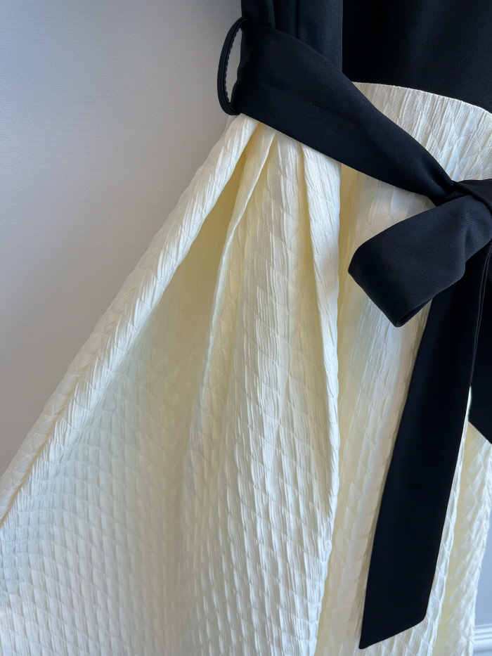 고급스러운 자가드 원단과 리본 벨트 디테일로