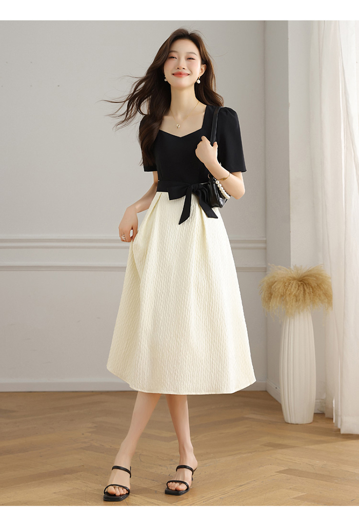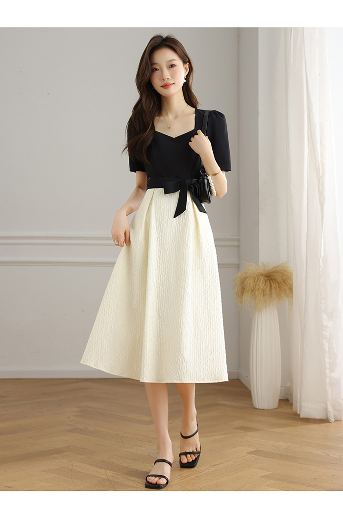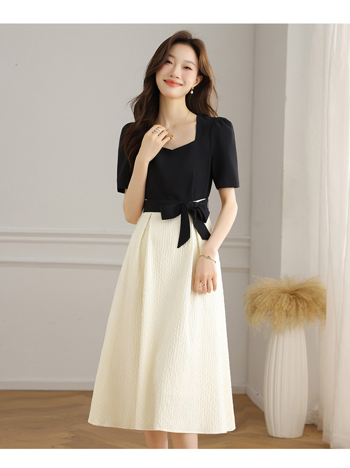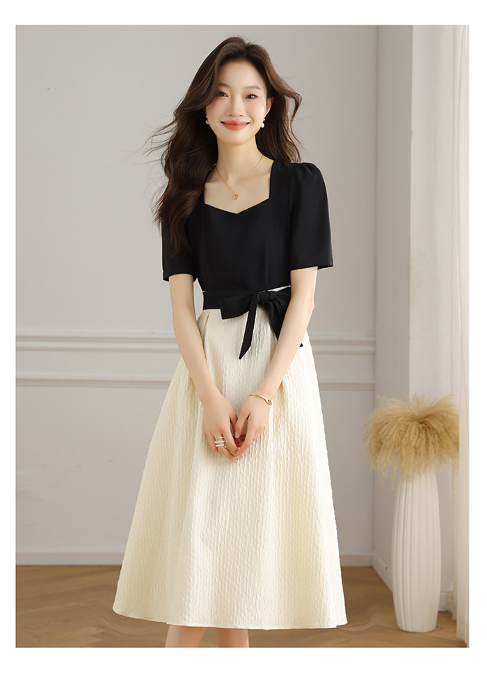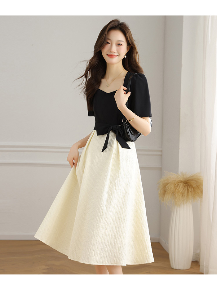 고급스러운 자가드 원단과 리본 벨트 디테일로