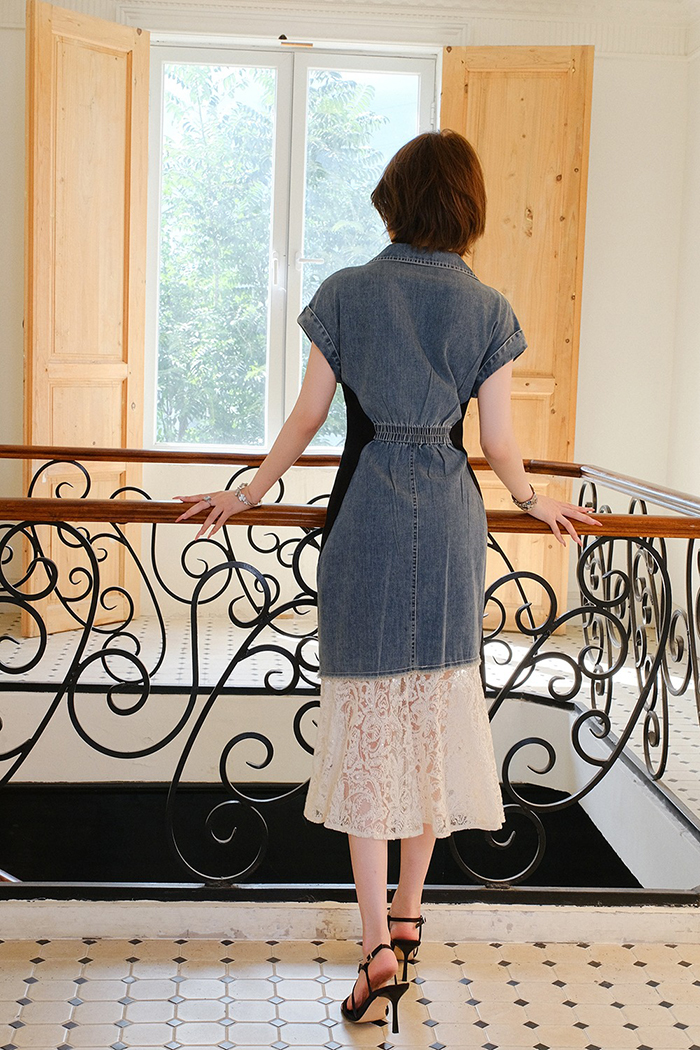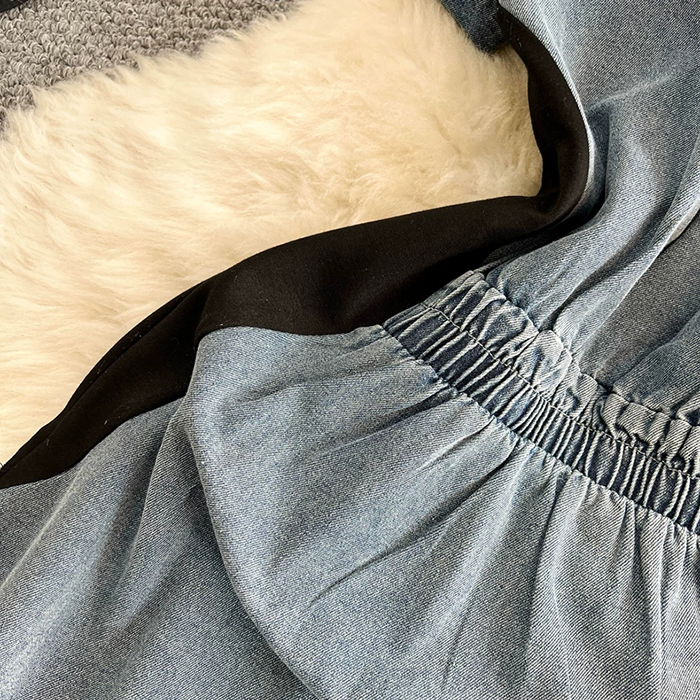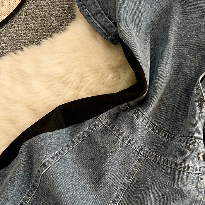 SIZEM 55~66 : 가슴 94 / 허리 76~ / 총길이 115 cmXL : 가슴 102 / 허리 84~ / 총길이 117 cmFABRIC데님신축성있음 / 두께감보통 / 비침없음초반 드라이클리닝 권장
