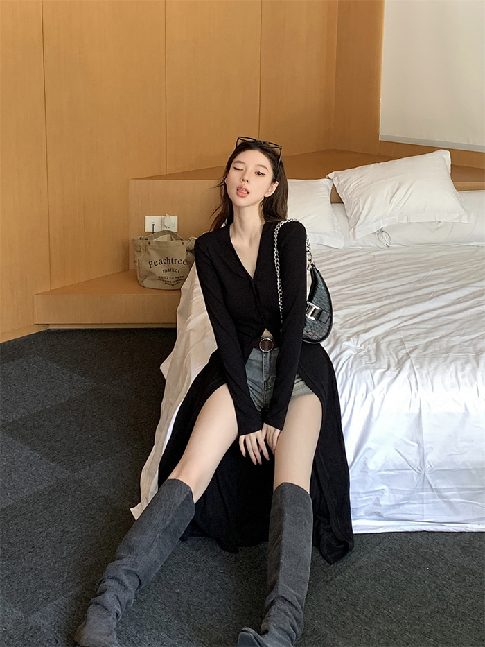 SIZEFree 55~66 : 가슴 64~ / 총길이 110 cmFABRIC니트신축성있음 / 비침없음 / 두께감보통초반 드라이클리닝 권장