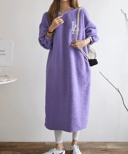 • 국내제작 / 영문 레터링 뽀글 후리스 루즈핏 롱원피스 - 빅사이즈까지( 리뷰 : 0 )
