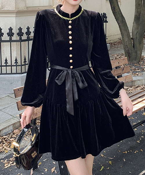 • 골든 금장 장식 벨벳 원피스( 리뷰 : 0 )