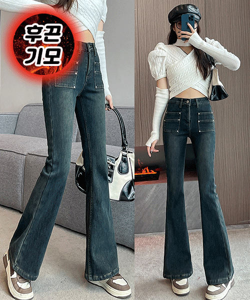 • 기모 기모 / 베론 포켓 하이웨스트 부츠컷 데님 팬츠 청바지( 리뷰 : 0 )