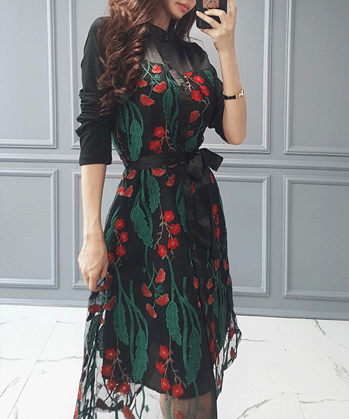 주말신나특가 / 겐조플로랄 시스루 롱 블라우스 원피스