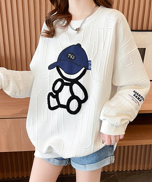 맨투맨맛집 / 티제이 엠보영문 박시 맨투맨 티셔츠