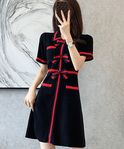 클랑 세일러카라 꽃자수 원피스 - 빅사이즈 2XL입고