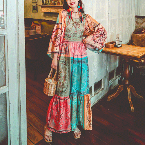 무료배송 / 웬디 보헤미안 에스닉 롱원피스