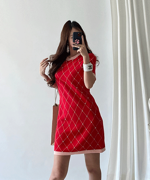 메이즈 마름모 쥬얼 여름 니트 원피스