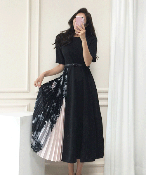 비비아나 플리츠 벨트 롱원피스 - 빅사이즈까지
