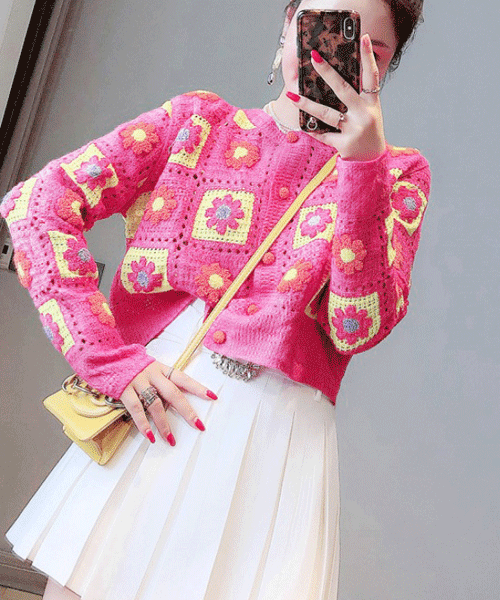 꽃순이 뜨개 꽃 가디건