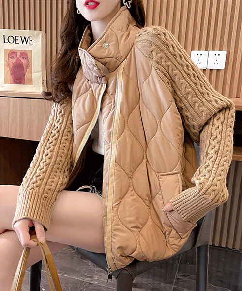 제이브 꽈배기니팅 경량 퀼팅 누빔 점퍼