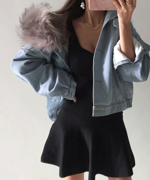 오르베 후드퍼 밍크 데님 퍼 자켓