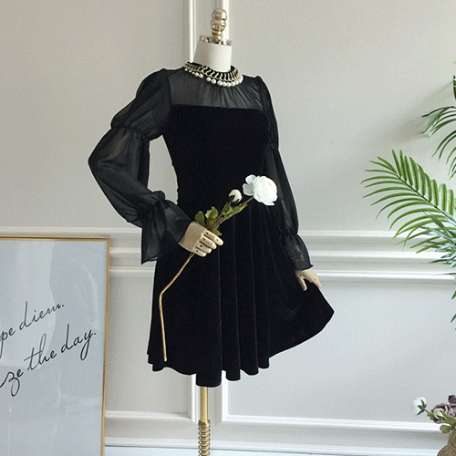 국내제작 / 샬롯 시스루탑 공주 벨벳 원피스
