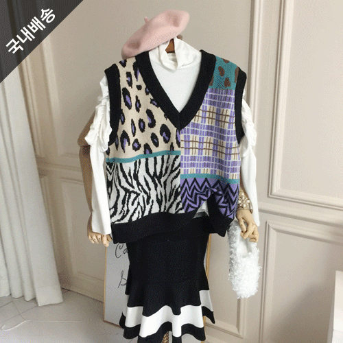 국내배송 / 포를리 비비드 체크 배색패턴 니트 조끼