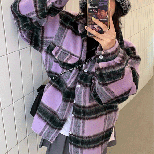 국내배송 / 퍼플매직 오버핏 융기모 체크 셔츠
