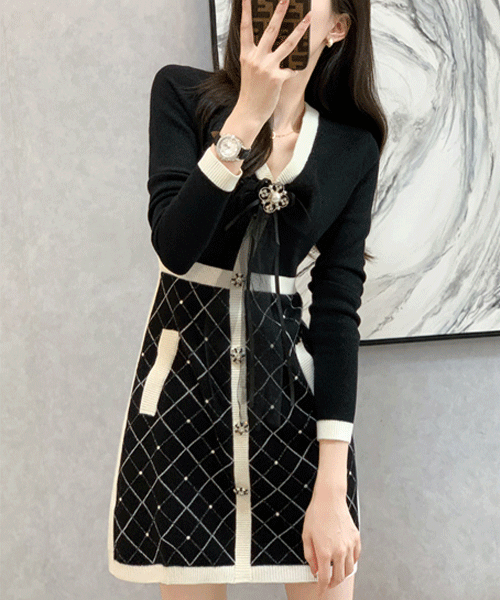 엘포네 리본 페미닌 니트 원피스 2XL까지