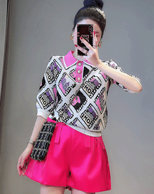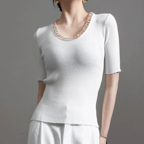 국내배송 / 파올로 체인 골지 여름 반팔 니트탑