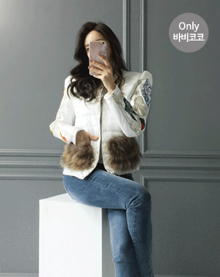 무배 / 메랄다 자수장식 래빗퍼 숏패딩