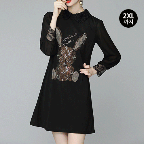 무료배송 / 래빗 시스루 볼륨소매 원피스 2XL까지