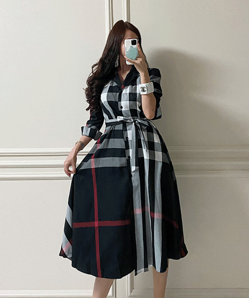 라파엘 클래식 체크 플레어 롱원피스