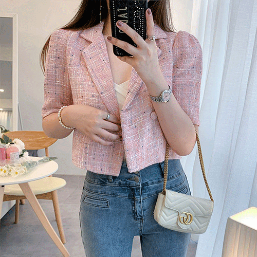 국내배송 / 리몬첼로 써머 트위드 퍼프소매 자켓