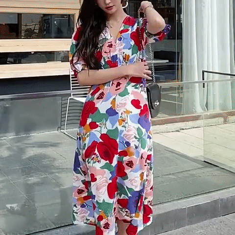 무료배송 / 미구엘 볼륨소매 쫄쫄이 비비드 플라워 원피스
