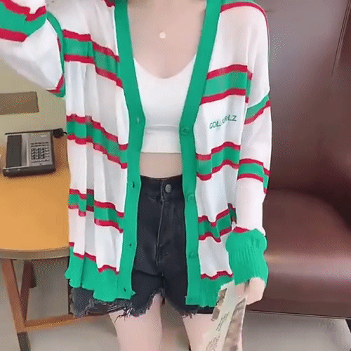 국내배송 / 에단 비비드 컬러 단가라 가디건