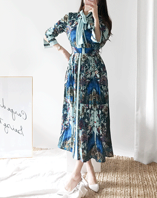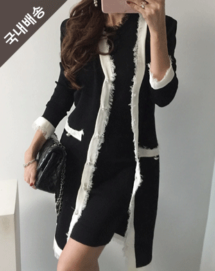 [특가] 샤르트 엘레강스 수술장식 니트 롱가디건 원피스 세트