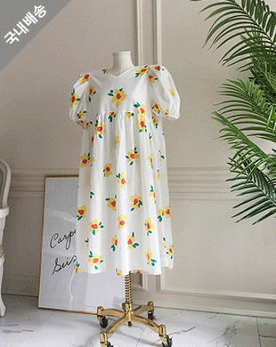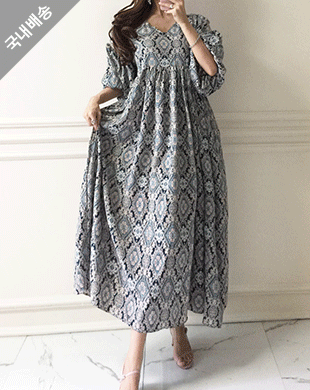 국내배송 / 마리엔 유러피안 꽃패턴 볼륨소매 오버핏 롱원피스